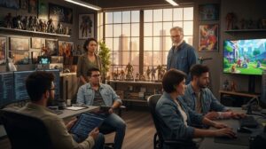 他の学生とチームを組み、営業・開発・スタッフなどの役割を体験します。